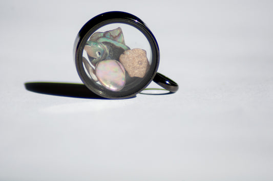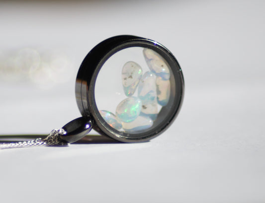 Glazen hanger zwart met Australische opaal snippers