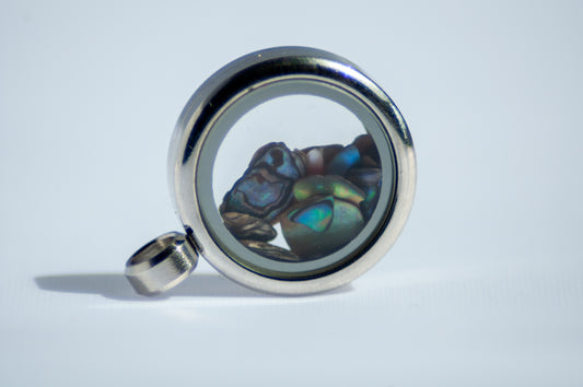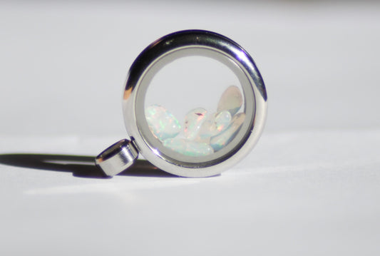 Glazen hanger zilver met Australische opaal snippers