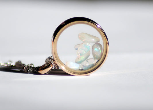 Glazen hanger roségoud met Australische opaal snippers