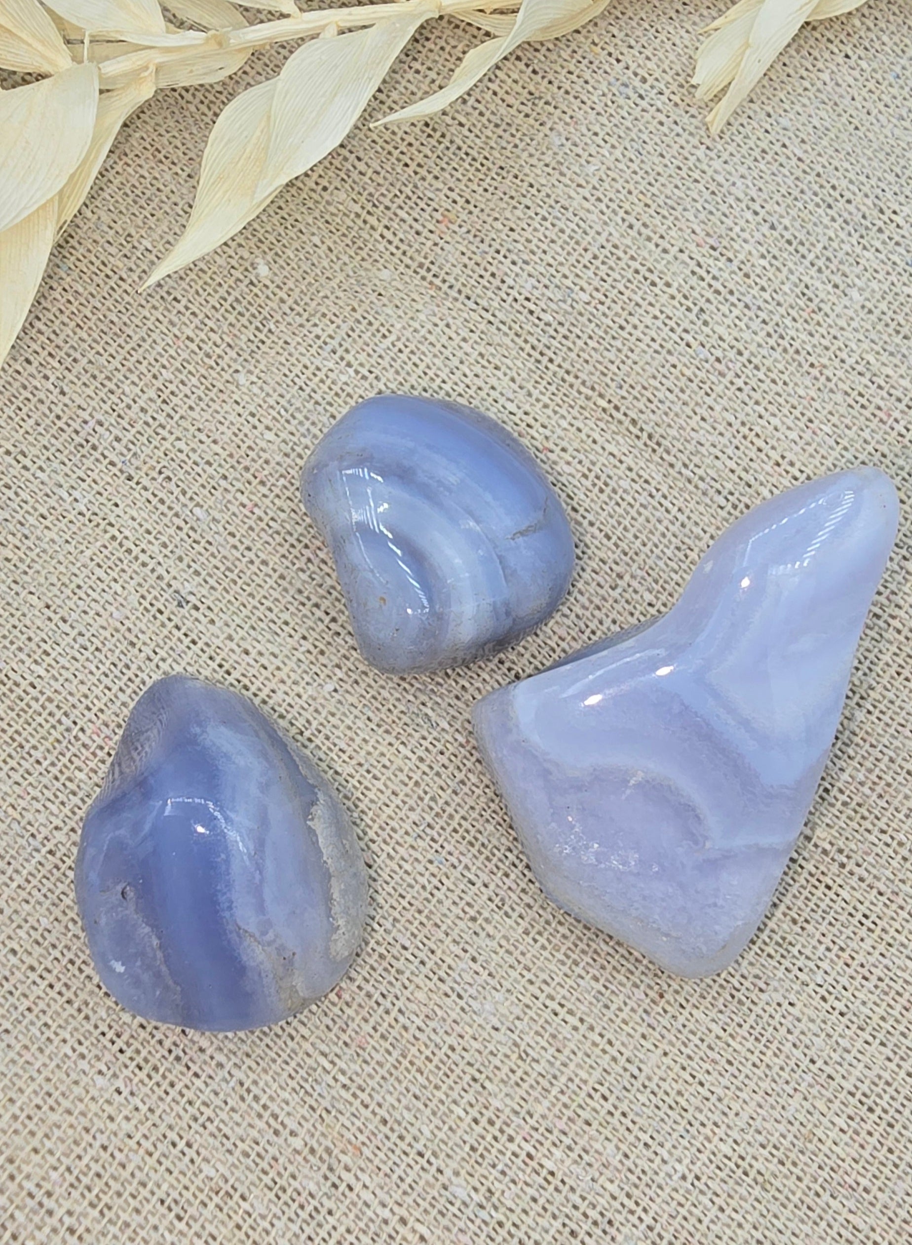 Blue lace agaat is een steen die helpt bij het uiten van emoties en bevordert kalmte in tijden van angst en spanning.