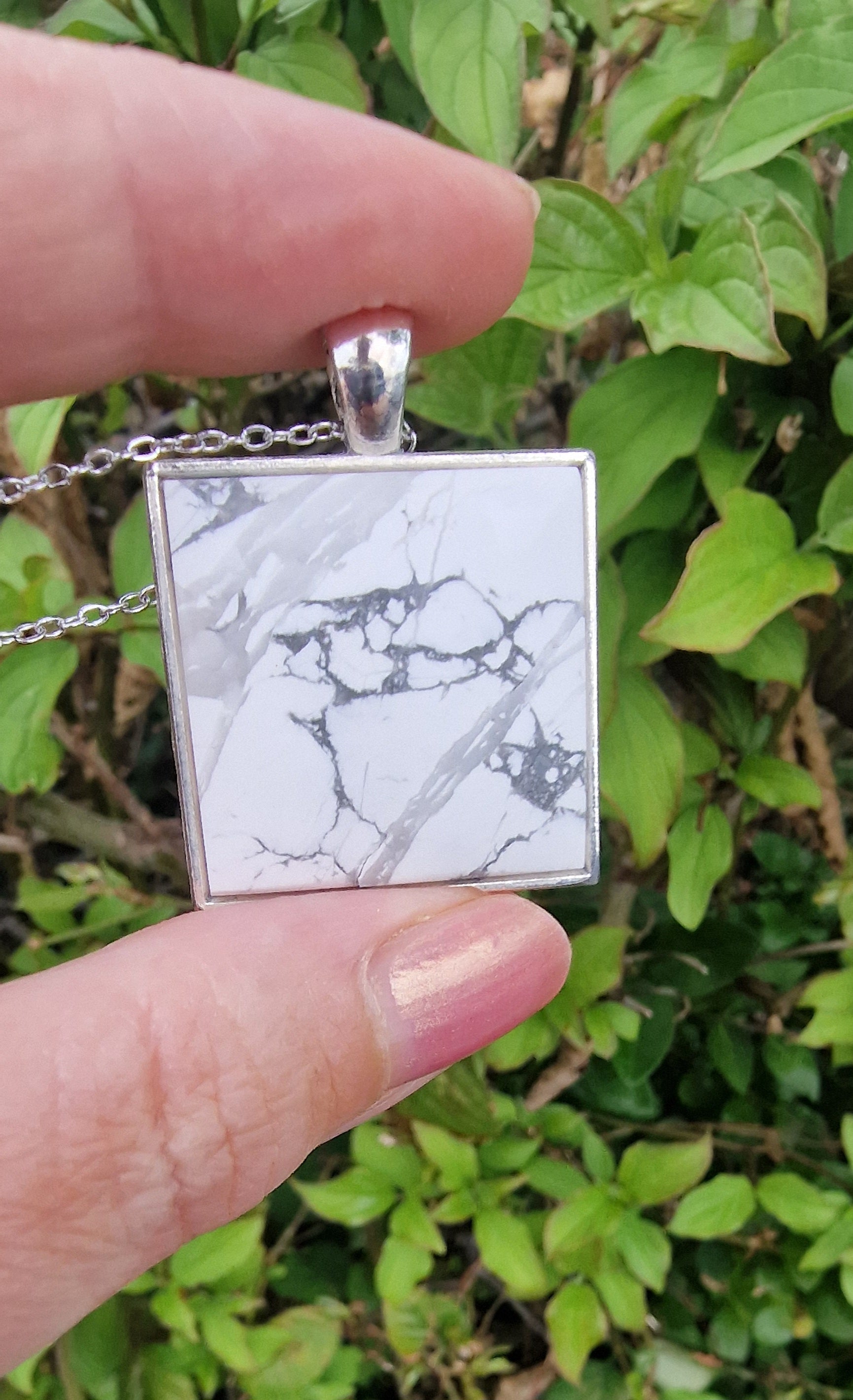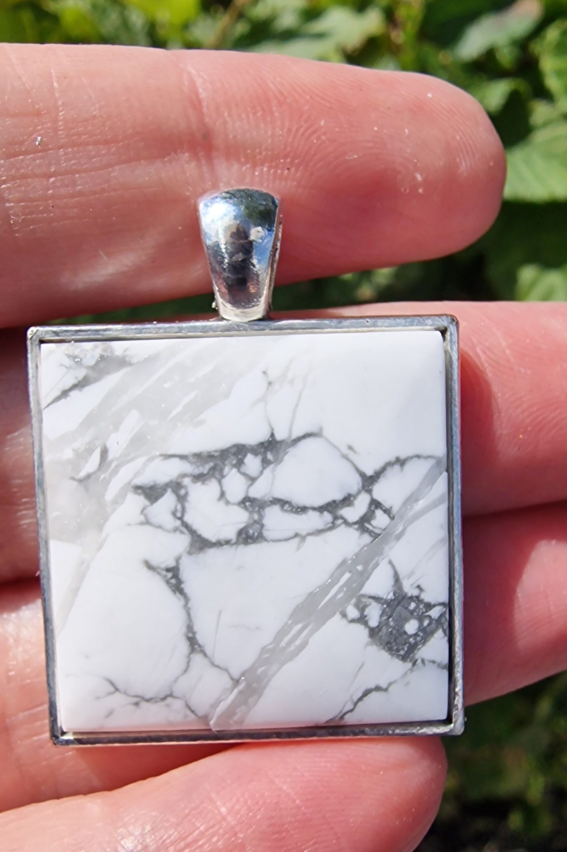 Deze prachtige Howliet hanger is met veel zorg in zijn vorm geslepen en gepolijst, en is hierdoor een prachtige unieke hanger geworden