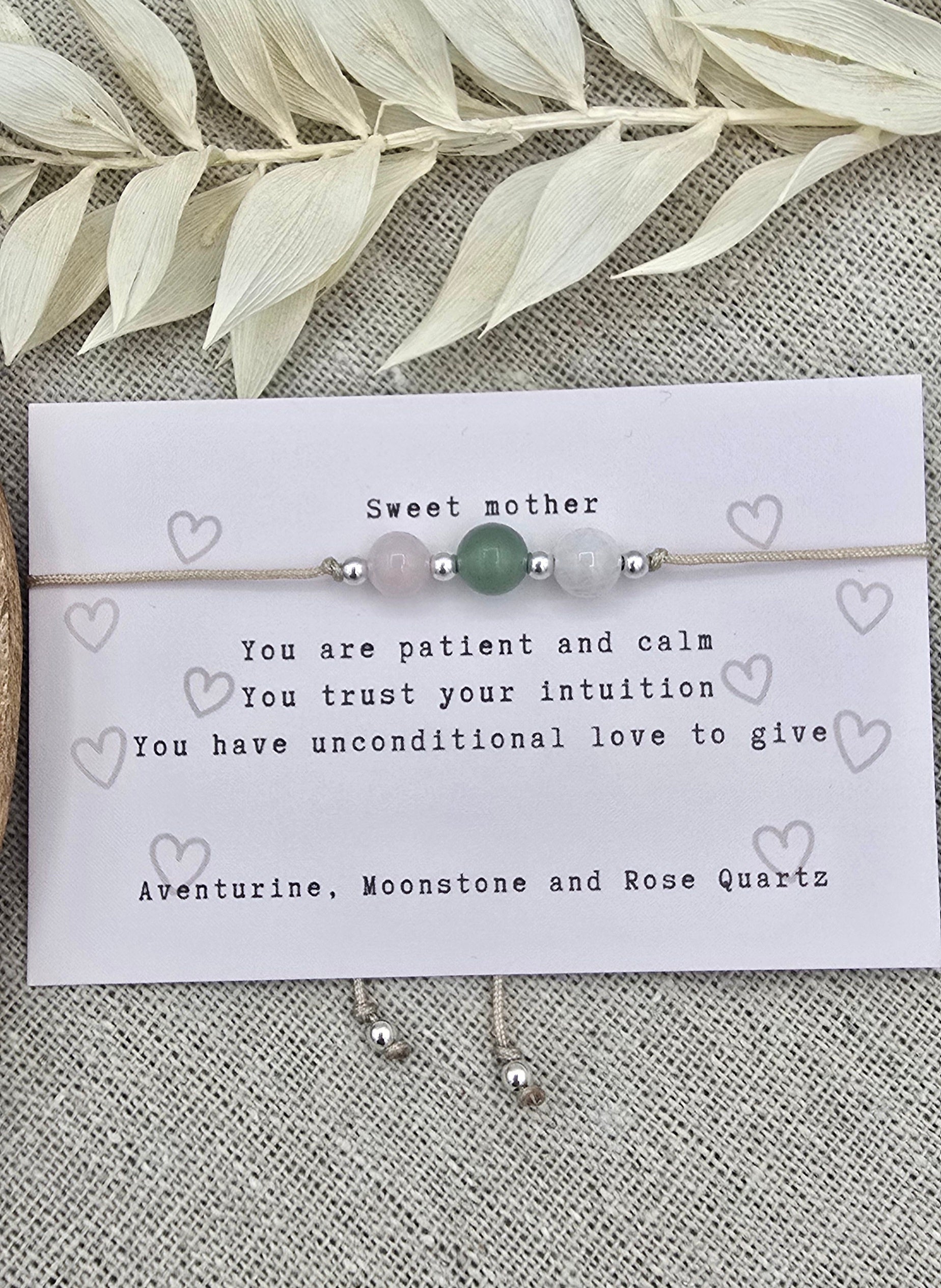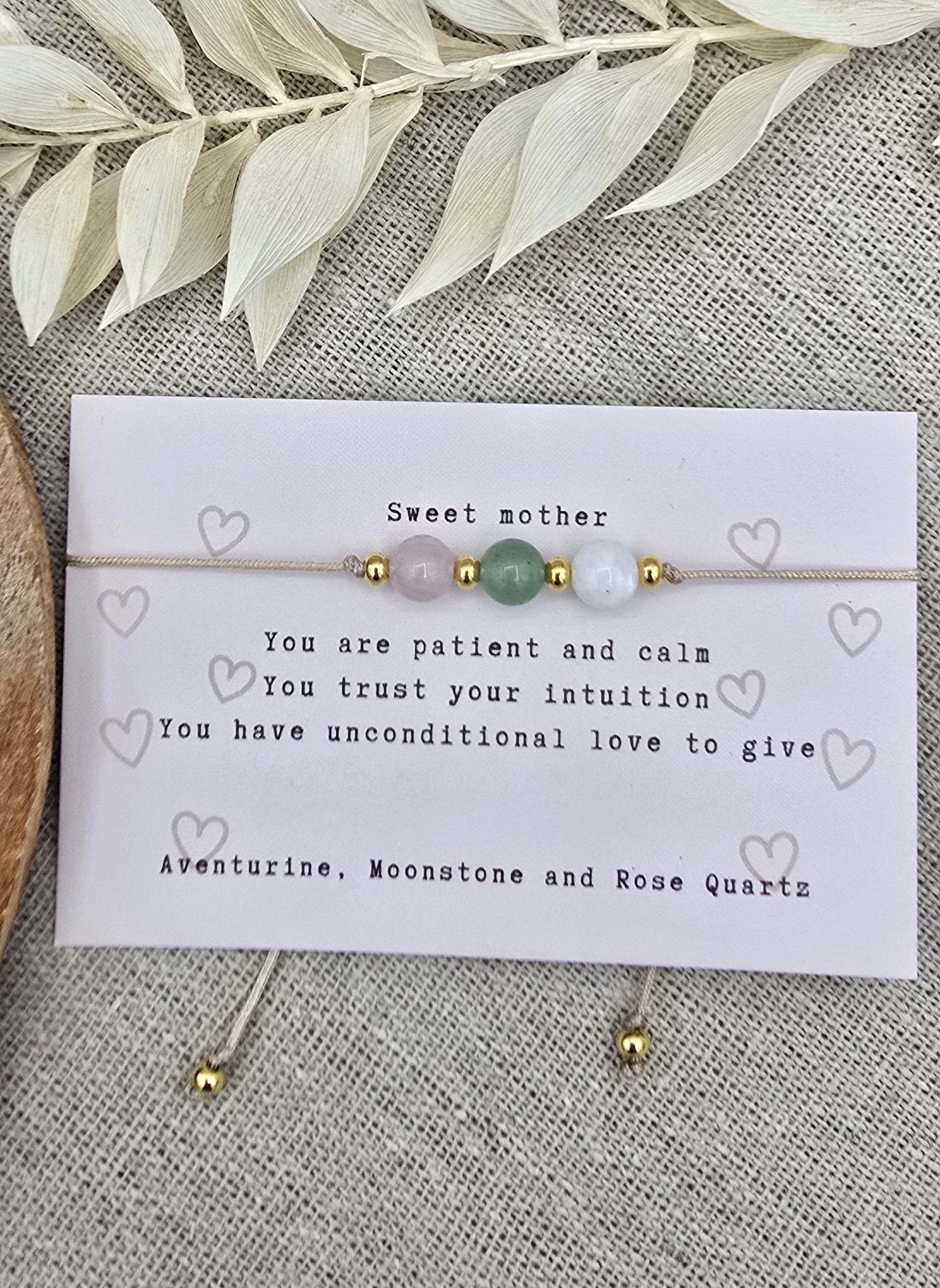 Het armbandje zit verpakt om een kaartje waar de werking in affirmatie vorm op staat, dit kaartje kan je bewaren, bijvoorbeeld in je portemonnee om altijd bij je te dragen.