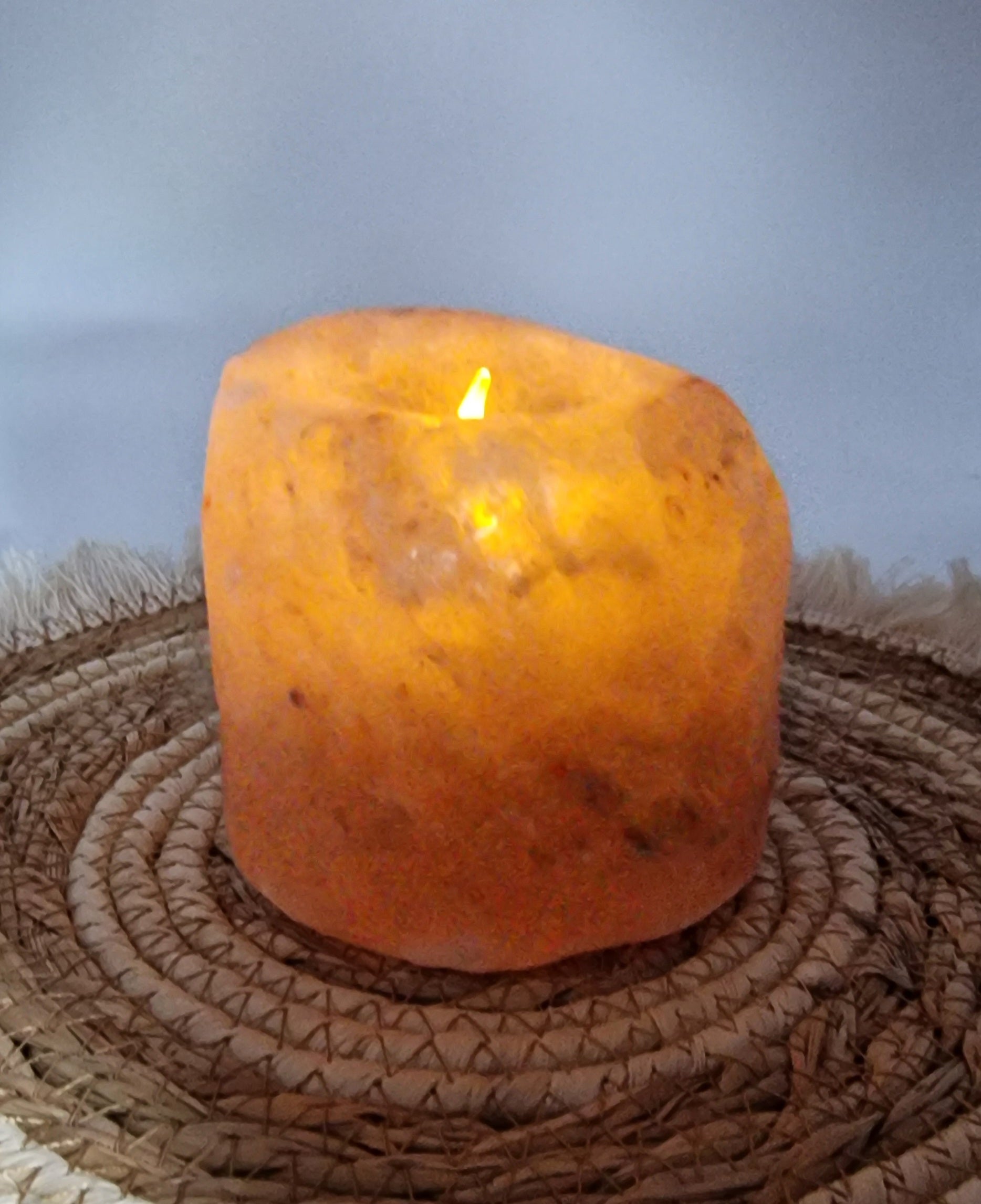 Dit waxinelichtje is geheel van Himalaya zoutsteen.